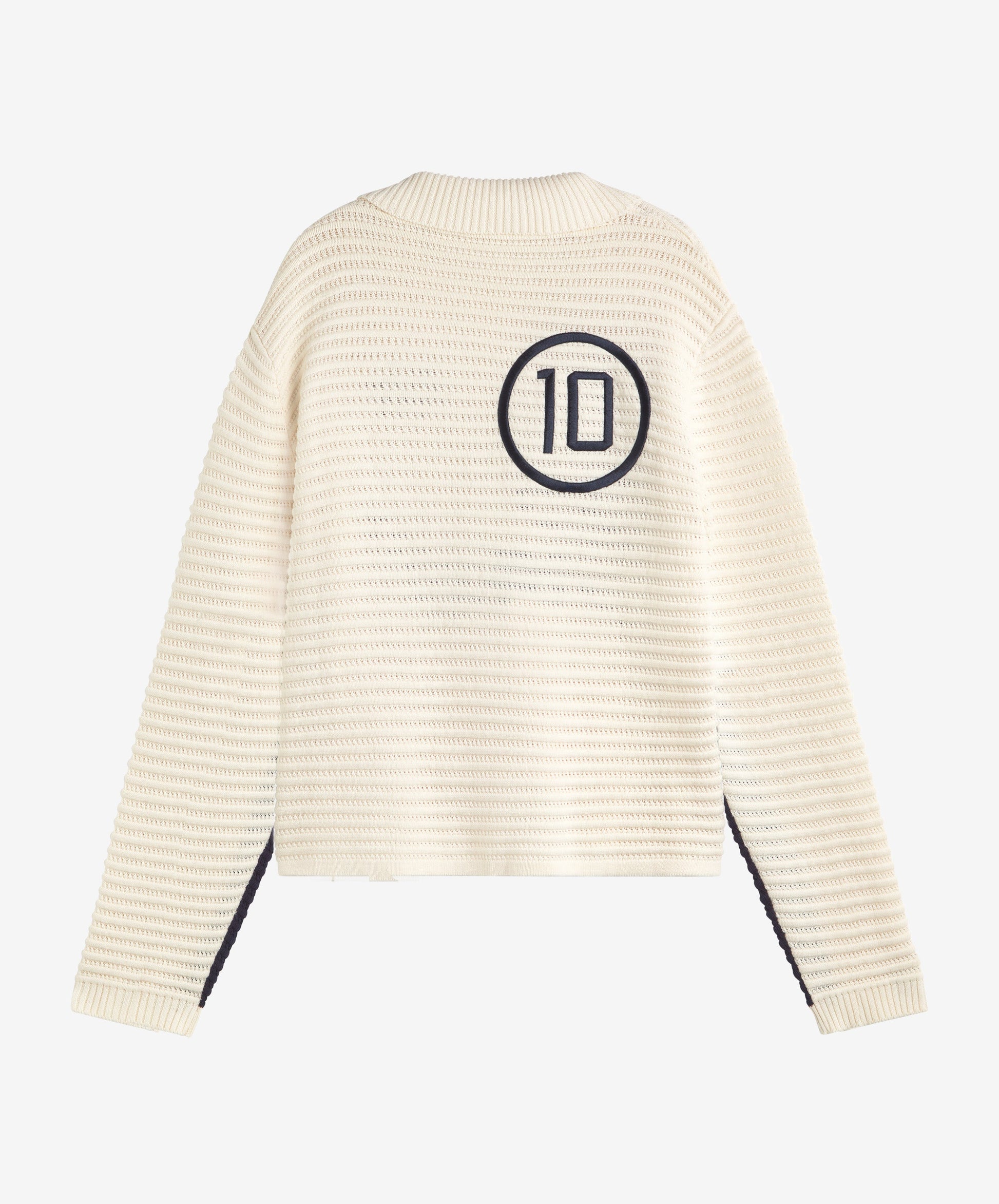 Su tejido de punto premium en color crema te envuelve en confort, mientras que los detalles en contraste y el elegante logo Gods en el pecho aportan un toque de sofisticación inconfundible. En la espalda, el número 10, un símbolo universal de excelencia. Es una prenda diseñada no solo para destacar, sino para ser un clásico atemporal en tu armario.