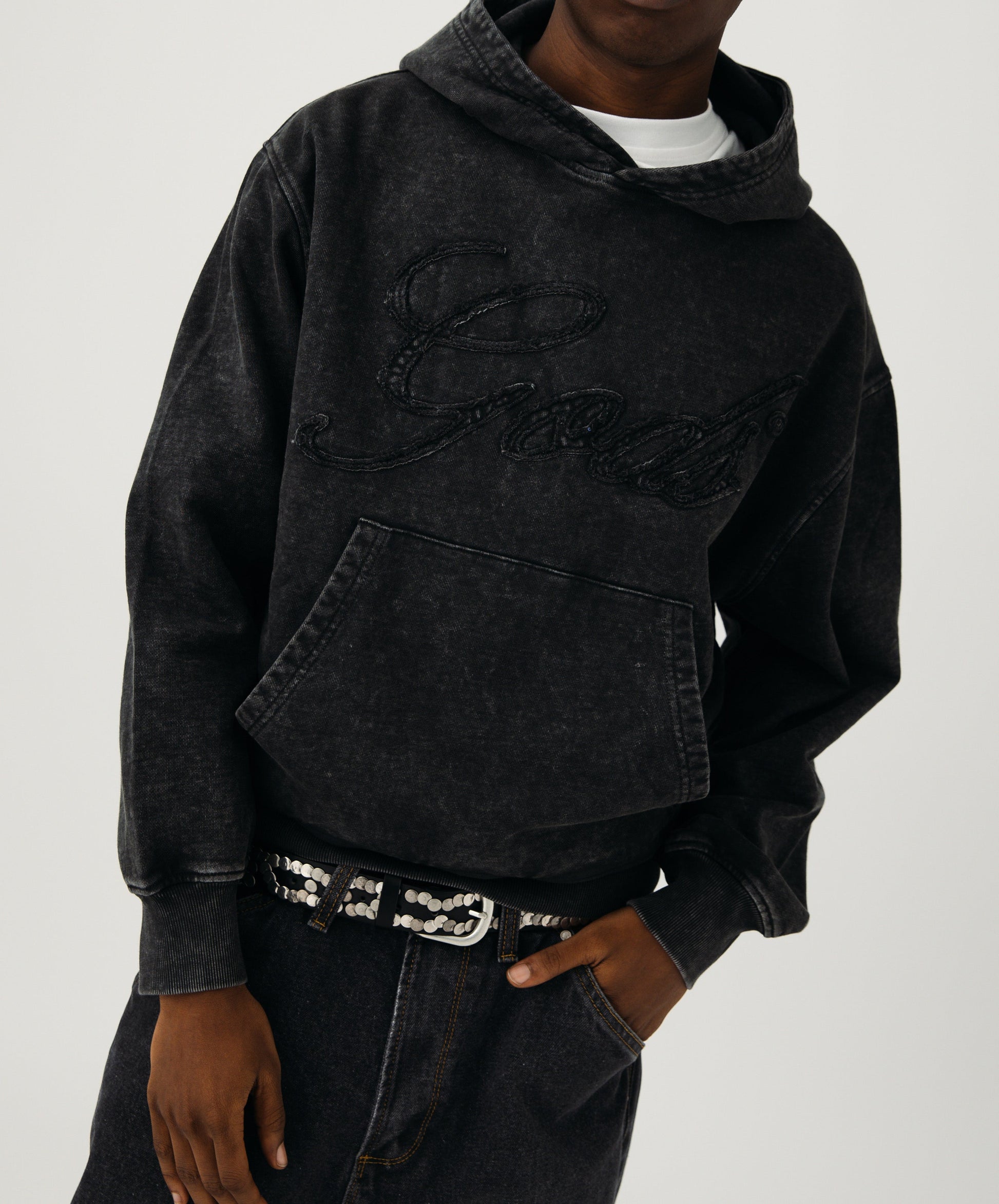 Su corte relajado, junto con la capucha envolvente y el práctico bolsillo canguro, asegura la máxima comodidad. Además, el bajo ajustable con cordón te permite personalizar la silueta a tu gusto. Es la sudadera perfecta para quienes buscan una pieza versátil, con una calidad palpable y un diseño que habla a través de sus texturas y acabados.