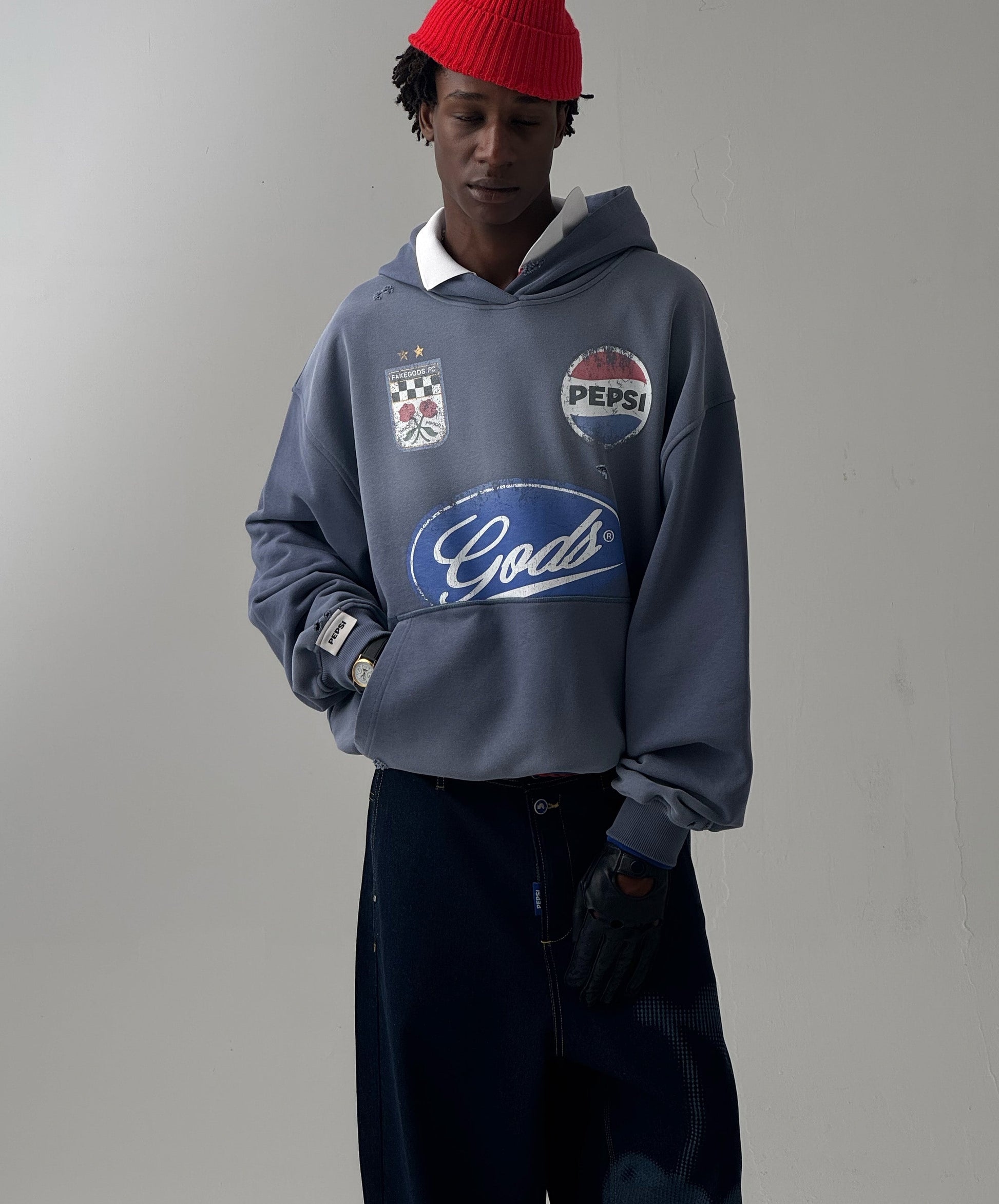 Rompe las reglas con la Pitstop Cropped Hoodie, una pieza central de la colección Pepsi x GODS. Su diseño combina un corte cropped contemporáneo con detalles desgastados que le otorgan un espíritu único y audaz.