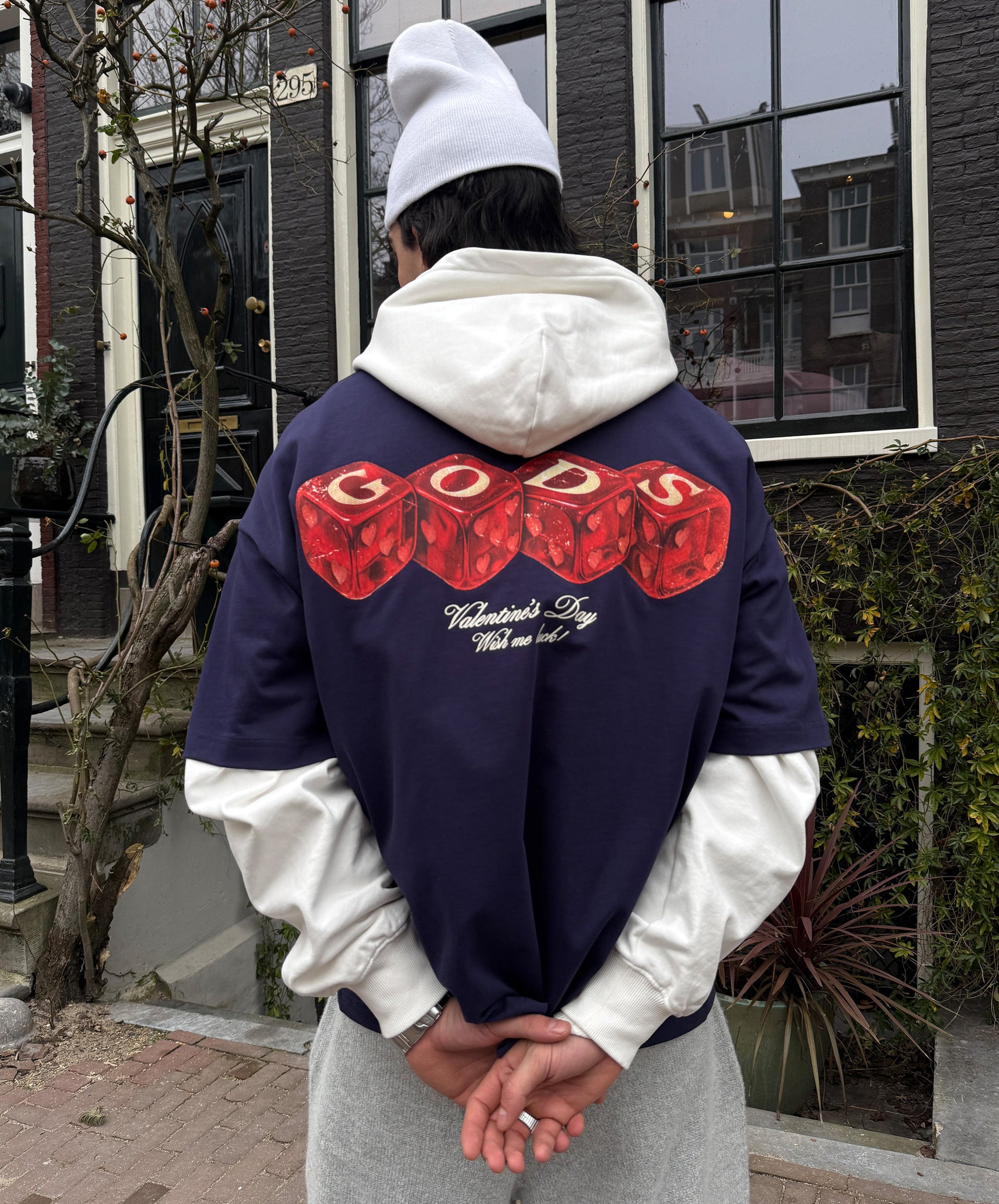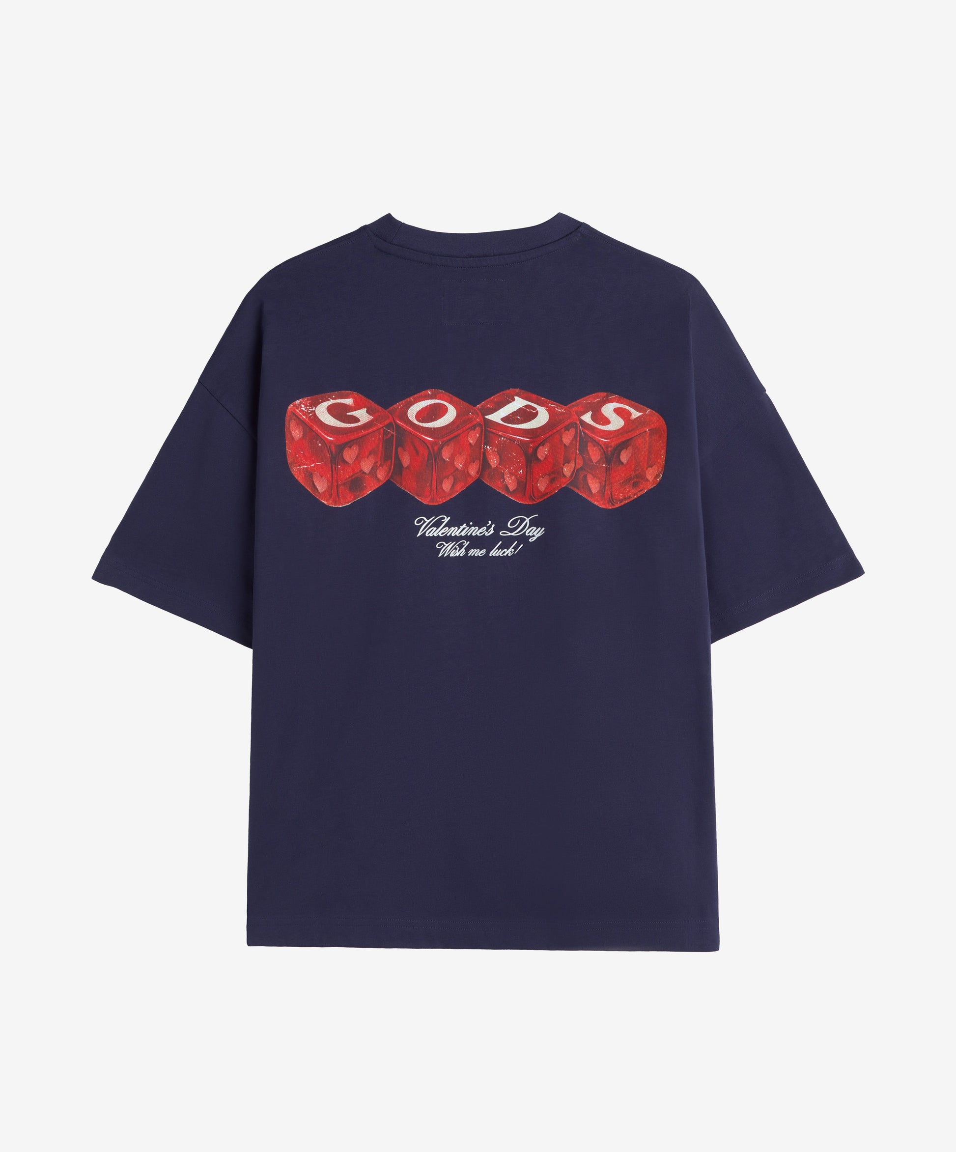 Confeccionada en algodón de tacto suave, esta camiseta ofrece comodidad y estructura para el uso diario. Su color navy proporciona una base profunda y equilibrada para la gráfica de los dados rojos en la espalda, que destaca como el elemento central del diseño.
