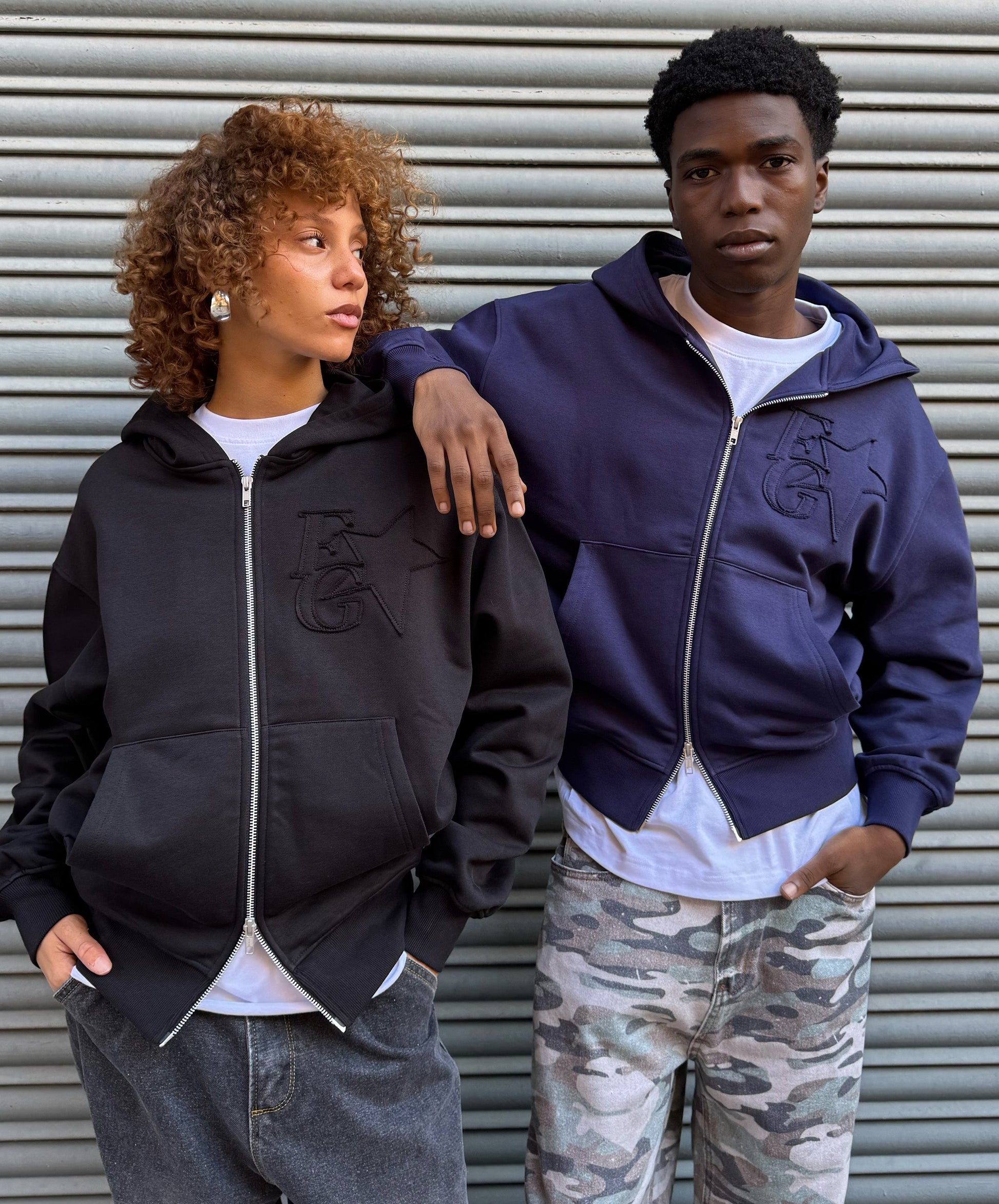 Hemos mantenido todo lo que te encanta, el corte cómodo y contemporáneo, la capucha envolvente y la calidad premium del tejido. La novedad reside en la cremallera frontal, que te permite adaptar tu estilo sobre la marcha, y en los detalles tonales. El emblemático logo FG con la estrella está bordado en el mismo negro, creando un efecto sutil y refinado tanto en el pecho como en la espalda.